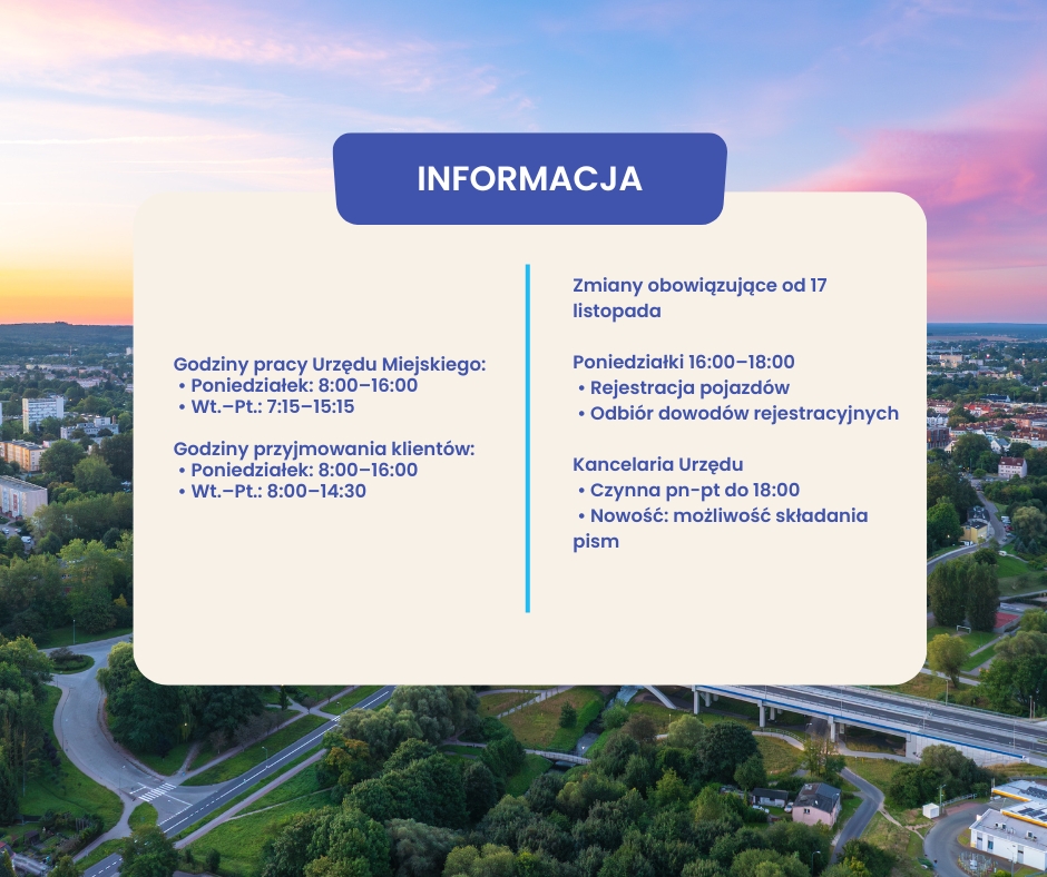 Przypominamy o zmianach godzin funkcjonowania Urzędu Miejskiego w Koszalinie