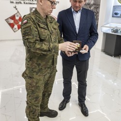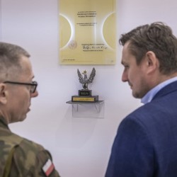W trakcie wizyty Prezydent zwiedził również Salę Tradycji pułku, gdzie zapoznał się z historią oraz osiągnięciami koszalińskich przeciwlotników. Szczególną uwagę zwróciło prestiżowe wyróżnienie – tytuł „Przodujący Oddział Wojska Polskiego”, przyznawany przez Ministra Obrony Narodowej. To dowód najwyższego uznania dla wysokiego poziomu wyszkolenia, wzorowej dyscypliny oraz zaangażowania żołnierzy w służbę Ojczyźnie.