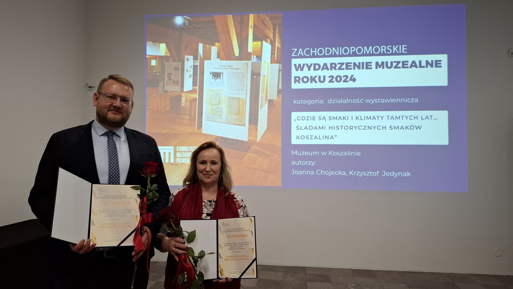 Wystawa Muzeum w Koszalinie „Gdzie są smaki i klimaty tamtych lat… Śladami historycznych smaków Koszalina” została wyróżniona w konkursie Zachodniopomorskie Wydarzenie Muzealne Roku 2024! Nagrodę podczas gali w Muzeum Narodowym w Szczecinie odebrali kuratorzy wystawy – Joanna Chojecka, dyrektor Muzeum w Koszalinie oraz Krzysztof Jedynak, kierownik Działu Historycznego.Konkurs Zachodniopomorskie Wydarzenie Muzealne Roku został zorganizowany już po raz 15. W tym roku 11 instytucji z całego województwa zgłosiło aż 26 projektów w trzech kategoriach: