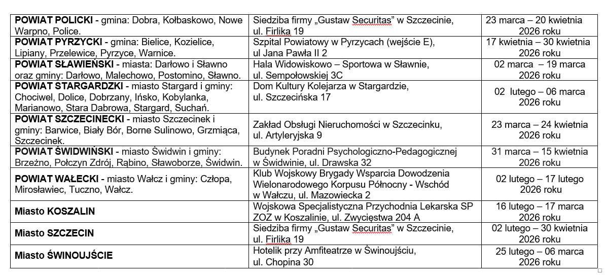 o kwalifikacji wojskowej w województwie zachodniopomorskim w 2026 roku