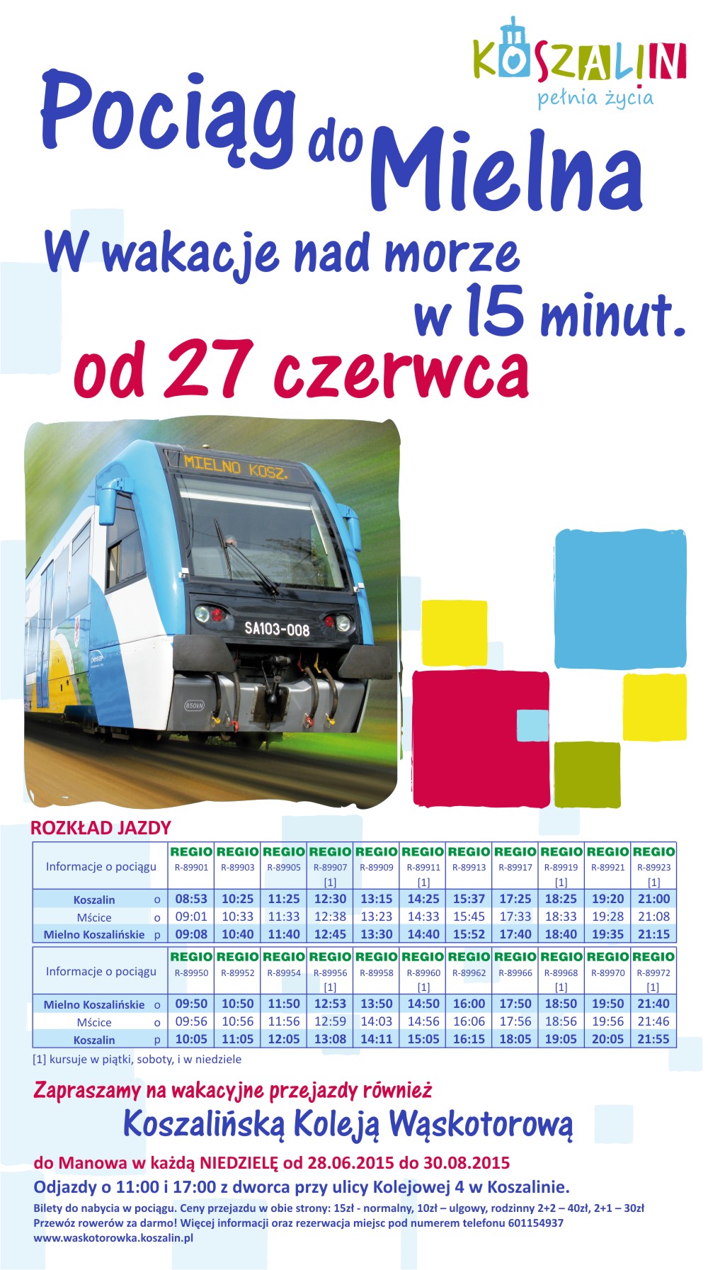 choć przez kilka ostatnich tygodni aura nie rozpieszczała turystów odpoczywających nad morzem szynobus kursujący z Koszalina do Mielna i statek wycieczkowy Koszałek pływający po Jamnie – cieszą się coraz większą popularnością. Potwierdzają to statystyki: od 27 czerwca do 2 sierpnia szynobusem podróżowało aż 27.400 osób. To o 7.300 więcej niż w zeszłym roku i o 6.400 osób więcej niż dwa lata temu w tym samym czasie. Więcej pasażerów przewiózł również „Koszałek”. Z podróży po Jamnie skorzystało w lipcu br. 9.045 pasażerów (rok wcześniej 7.527). W tym roku Koszałek rozpoczął rejsy 4 czerwca – co przełożyło się na jeszcze lepszy wynik: na jego pokład weszło bowiem łącznie 11.196 turystów.