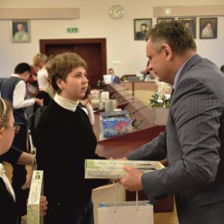 Piotr Jedliński wręczył wczoraj nagrody laureatom i uczestnikom konkursu na wykonanie projektów kartek świątecznych na Święta Bożego Narodzenia przez dzieci i młodzież z niepełnosprawnością.