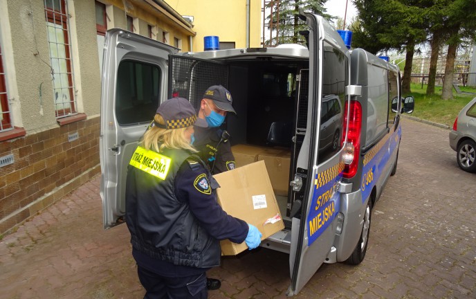 Dziś, 28 kwietnia Straż Miejska odbrała z Biura Bezpieczeństwa i Zarządzania Kryzysowego przy ul. Strażackiej 8 aż 10.000 maseczek ochronnych i strażnicy dostarczyli je do koszalińskiego Szpitala Wojewódzkiego.