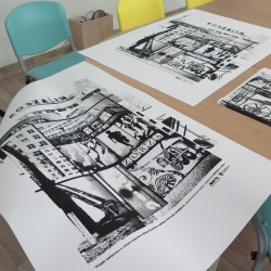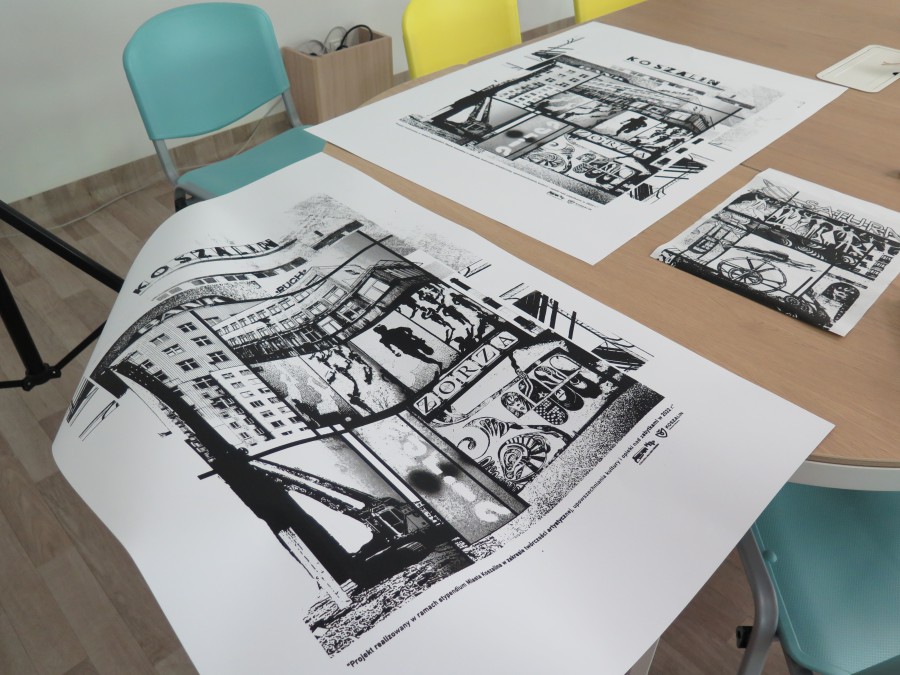 Podczas spotkania uczestnicy mogli samodzielnie wydrukować sobie koszulki, torby i plakaty w technice sitodruku. Wzór wykorzystywany podczas warsztatów był autorską grafiką Macieja Mazurkiewicza, stanowiąca połączenie znanych , koszalińskich motywów architektonicznych takich jak, neon kina Adria, budynek dawnego Empiku, Zorza, oraz mural „Maratończyk”. Grafika, była drugą realizacja Mazurkiewicza, w której wykorzystał koszalińską architekturę w warsztatach sitodruku.