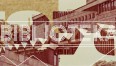 Grafika przedstawia kolaż z fragmentów budynku KBP w kolorach brązu i beżu oraz graficzny napis "BIBLIOTEKA" [1]