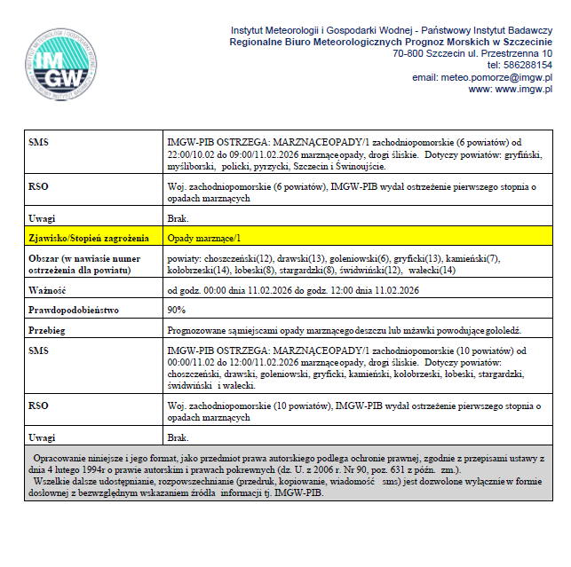 Ostrzeżenie meteorologiczne IMGW – woj. zachodniopomorskie