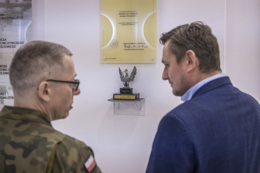 W trakcie wizyty Prezydent zwiedził również Salę Tradycji pułku, gdzie zapoznał się z historią oraz osiągnięciami koszalińskich przeciwlotników. Szczególną uwagę zwróciło prestiżowe wyróżnienie – tytuł „Przodujący Oddział Wojska Polskiego”, przyznawany przez Ministra Obrony Narodowej. To dowód najwyższego uznania dla wysokiego poziomu wyszkolenia, wzorowej dyscypliny oraz zaangażowania żołnierzy w służbę Ojczyźnie.